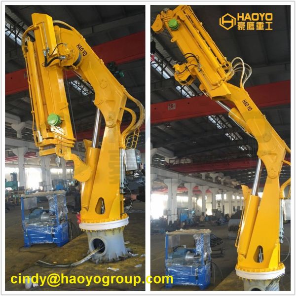 HAOYO Hot Sale 1ton Folding Small Boat Marine Crane with Hydraulic Winch Images |